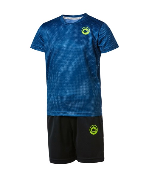 Conjunto deportivo para niño compuesto por camiseta y pantalón corto.